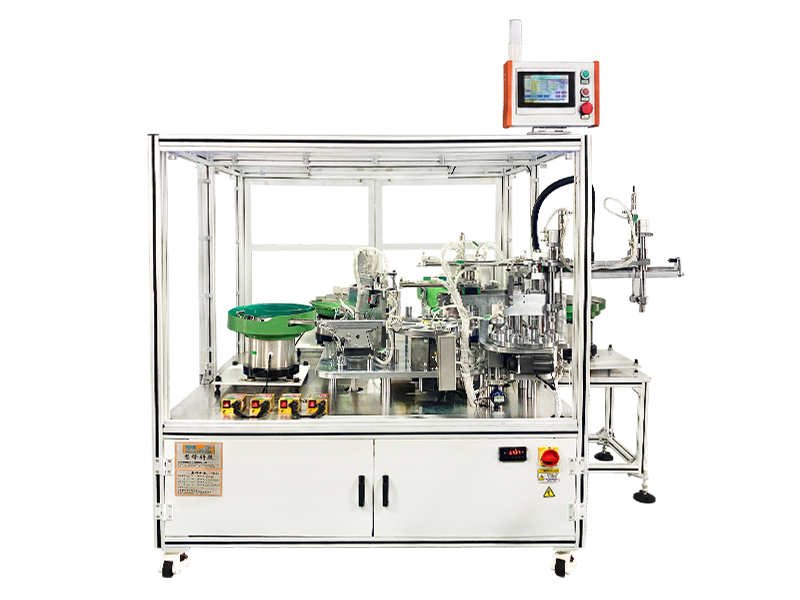 該設(shè)備所有物料分別由各自送料工位運(yùn)輸至中心組裝區(qū)對(duì)安裝零件進(jìn)行自動(dòng)定位檢測(cè)、套圈、注油、裝配、測(cè)量高度、等全自動(dòng)組裝作業(yè),后成品由下料口出。全程自動(dòng)化,提高效率,降低成本,可根據(jù)客戶(hù)要求定制。